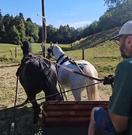 Zenta Gandolfina und Zenta black point das erste Mal gemeinsam in der Kutsche 😂